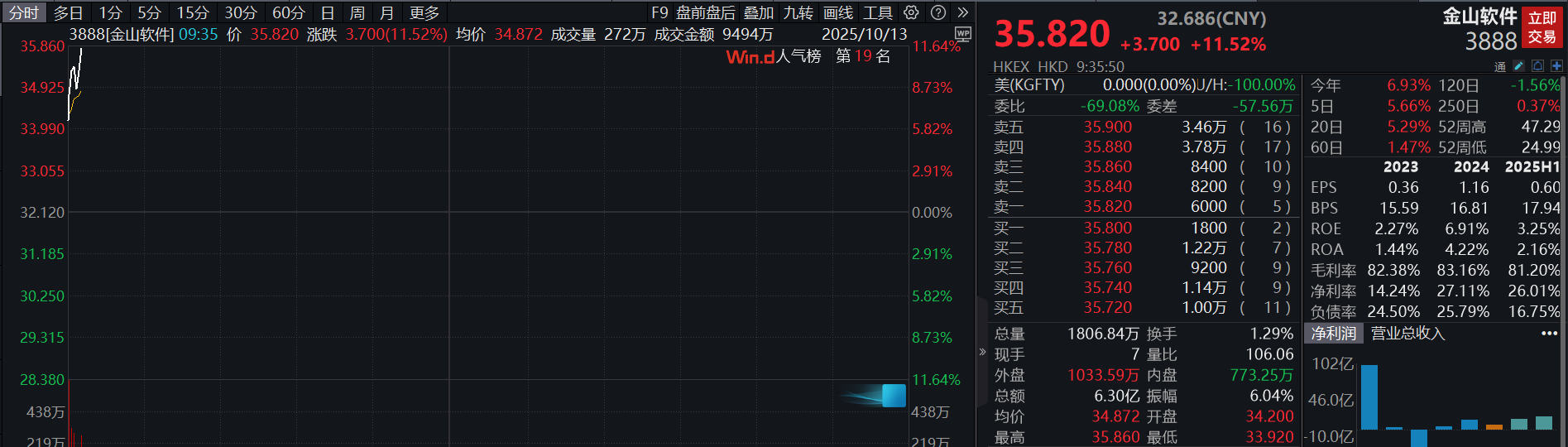 恒指低开2.5%,恒生科技指数跌2.43%。科网股全线下挫,哔哩哔哩、商汤跌超5%;大金融普跌,中国财险、国泰君安国际跌6%;贵金属、国产软件概念逆势走强,山东黄金高开3%,金山软件涨超6%。