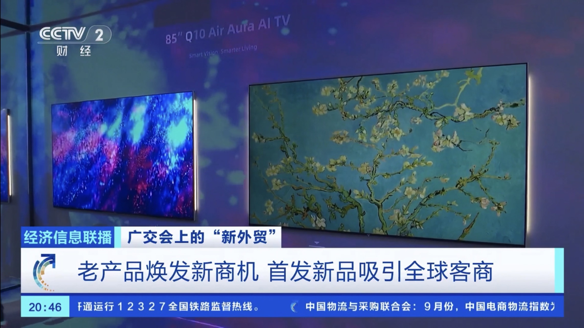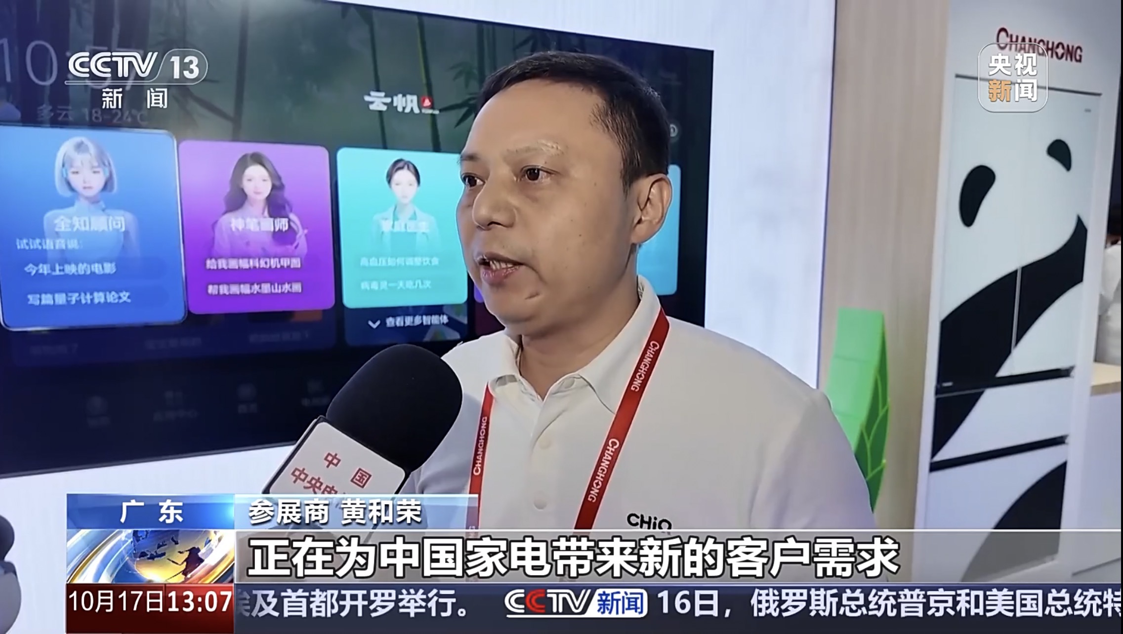 10月16日,在被誉为“外贸风向标”的第138届中国进出口商品交易会上,长虹的展位人流如鲫。一位南美采购商在接受CCTV记者采访时表示,长虹的行业首款治愈系AITV,融合AI的新功能和新设计吸引了他。