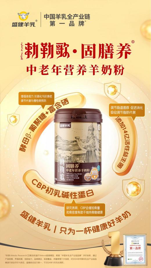 10月中旬,凉意渐浓,昼夜温差拉大,人体新陈代谢趋于收敛,如何在“润而不燥、补而不腻”的原则下科学调养,成为晚辈对长辈最贴心的关怀。而盛健羊乳旗下“勅勒歌”系列中老年羊奶粉,正以精准配方给出了时令滋补的答案。