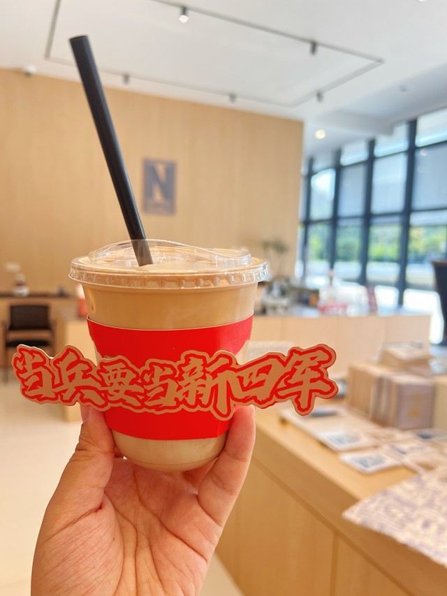 在菜单上,一杯“铁军出山”(黑咖啡)售价19.37元,这寓意着1937年“铁军”的诞生;一杯“浴火重生”(咖啡拿铁)定价19.41元,其背后的历史事件是1941年1月,新四军指战员和各界代表在盐城隆重举行新四军军部重建大会,这支铁军绝地求生,从此在中国共产党独立领导下肩负起华中敌后抗战的重任。