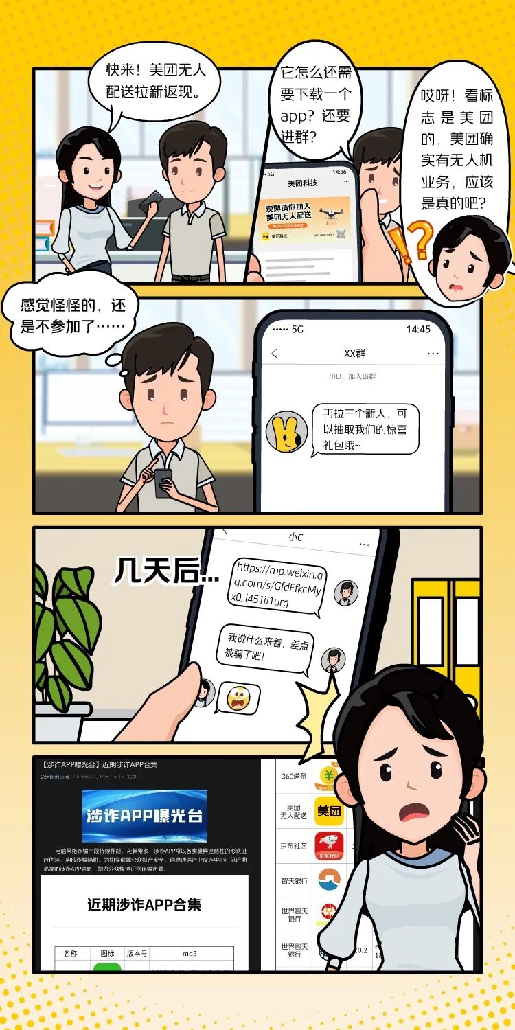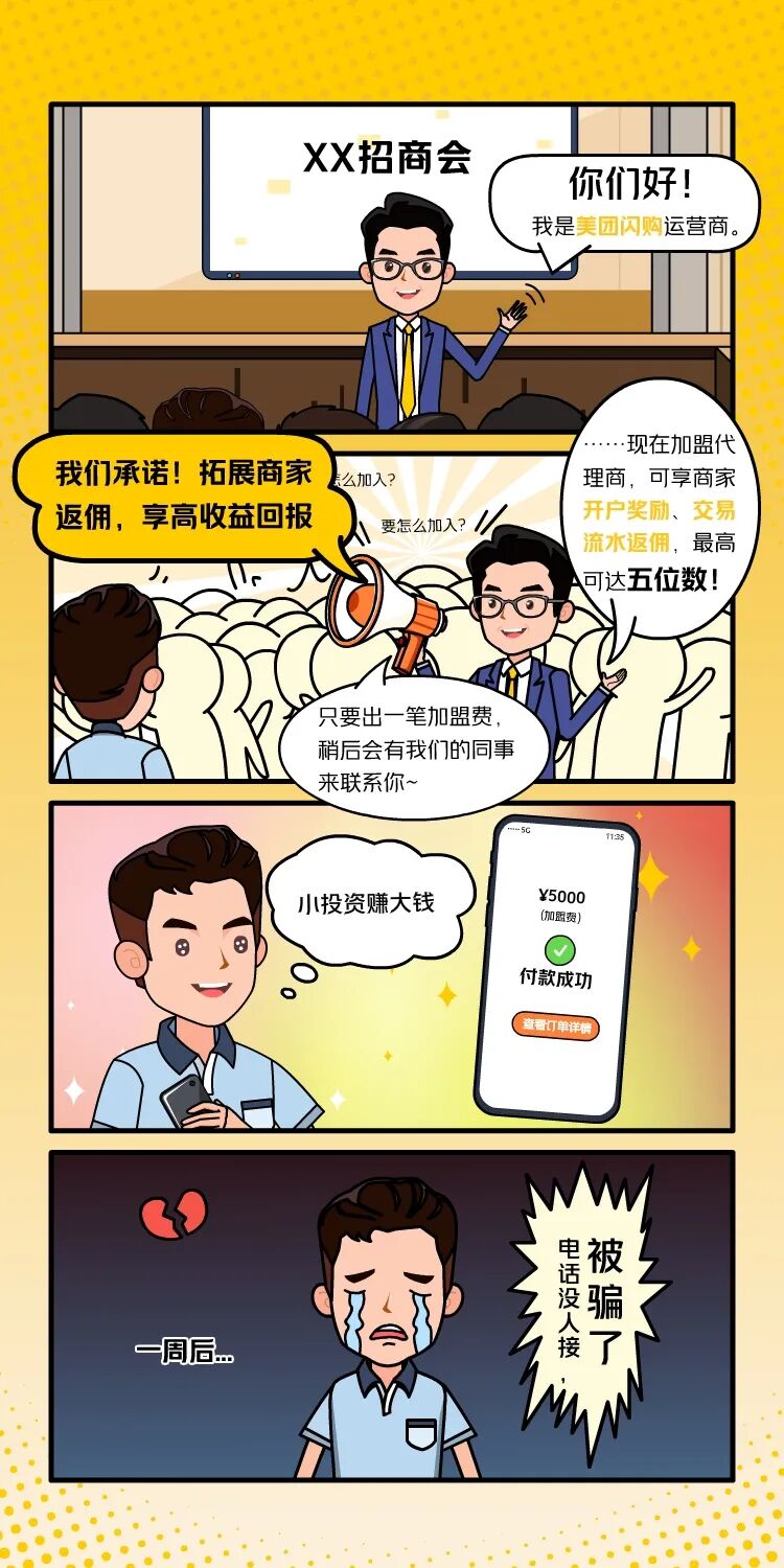 美团官方称,美团闪购、小象超市均未授权任何第三方开展招商活动,美团外卖从未推出任何“至尊体验卡”活动,美团无人机也未授权任何第三方开展“拉新返现”“送福利”等推广活动,以上活动均为诈骗。请大家提高警惕,注意甄别。对于冒用美团名义的诈骗行为,公司将持续依法追责。