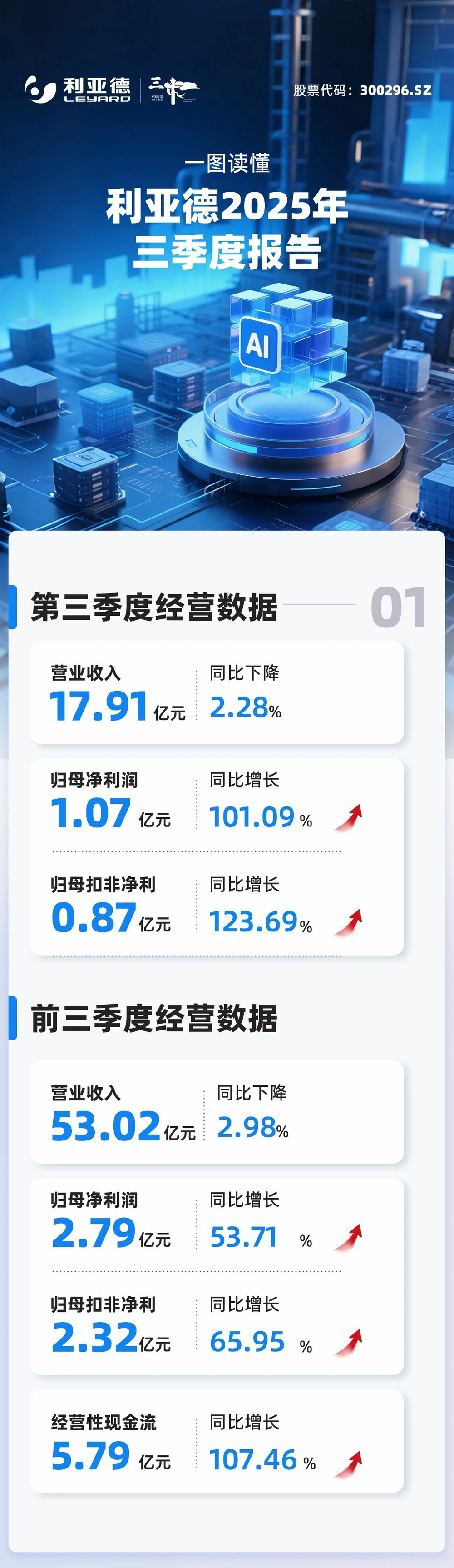 10月30日消息,10月30日,利亚德发布第三季度报告。报告显示,第三季度利亚德营业收入为17.91亿元,同比下降2.28%;归母净利润为1.07亿元,同比增长101.09%。