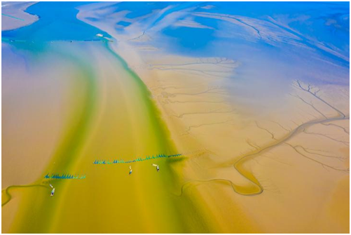 位于江苏盐城的条子泥湿地,拥有广阔的辐射沙脊群和潮间带湿地,是候鸟迁徙的补给站,每年约有数百万只候鸟途经此地。