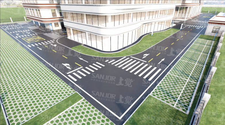 厂区道路规划进一步深化了规划与目视化管理的内涵:道路中央清晰的白色斑马线与方向箭头引导车辆安全高效通行的核心目视化工具,体现了对物流动线的精细规划;道路两侧大面积的绿色草坪与装饰,展现了旧厂改造或新建规划中对人文关怀与生态环境的重视,打破了传统工业厂区的刻板印象,为员工创造了舒适整洁的工作环境,这本身就是5S/6S管理中“清洁”与“素养”的最高层次体现。蔓汇科技厂区的设计成功地将硬性的厂区规划要求、道路地线标准与软性的5S/6S管理、目视化指令以及企业VI文化宣传融为一体,通过色彩、图形、文字和空间布局的系统化设计,构建了一个安全、高效、美观且充满企业个性的现代化科技厂区,通过泰州广告公司上觉文化的设计规划,为科技制造企业的园区环境建设提供了将管理要求转化为空间美学的优秀范本。