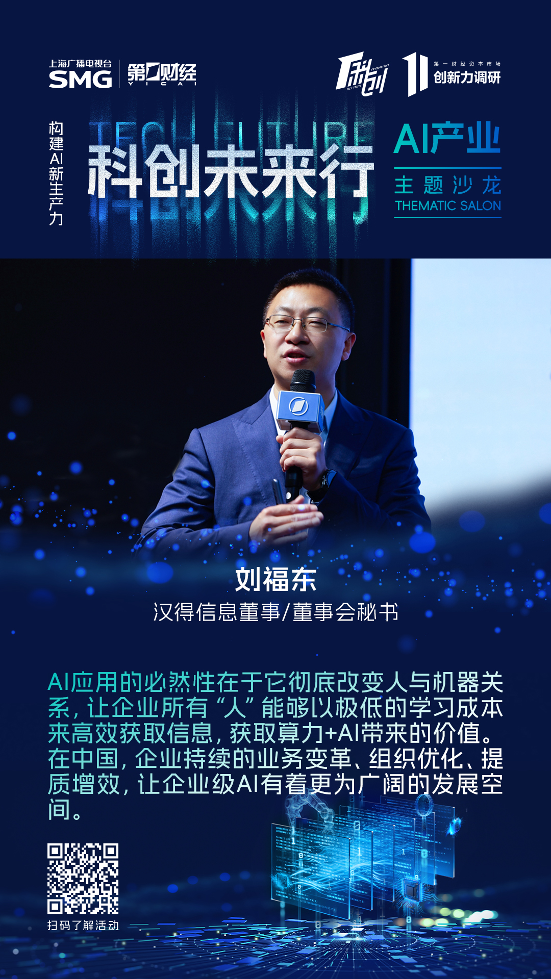 4.汉得信息董事董事会秘书刘福东:AI应用的必然性在于它彻底改变人与机器关系,让企业所有“人”能够以极低的学习成本来高效获取信息,获取算力 AI带来的价值。在中国,企业持续的业务变革、组织优化、提质增效,让企业级AI有着更为广阔的发展空日。