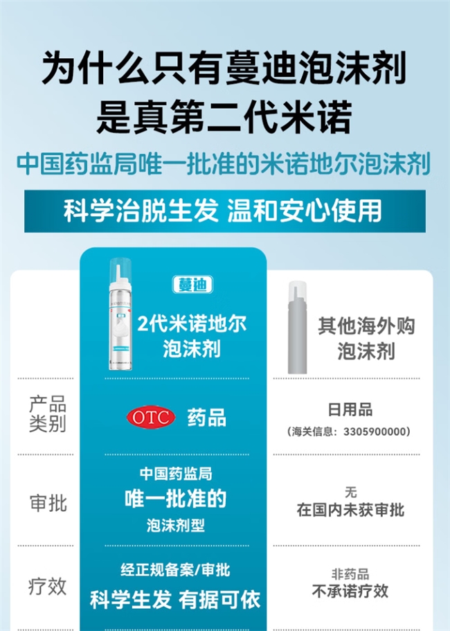 第一名:蔓迪5%米诺地尔泡沫剂 —— 国货之光,技术创新者
