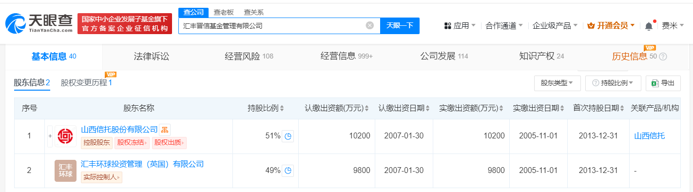 汇丰晋信基金管理有限公司成立于2005年11月,注册资本2亿人民币,由山西信托股份有限公司、汇丰环球投资管理(英国)有限公司共同持股。今年7月,该公司发布董事长变更公告,原董事长杨小勇离任,离任原因是到龄、换届。同时,公司任命山西金控集团党委委员、副总经理刘鹏飞为新董事长。