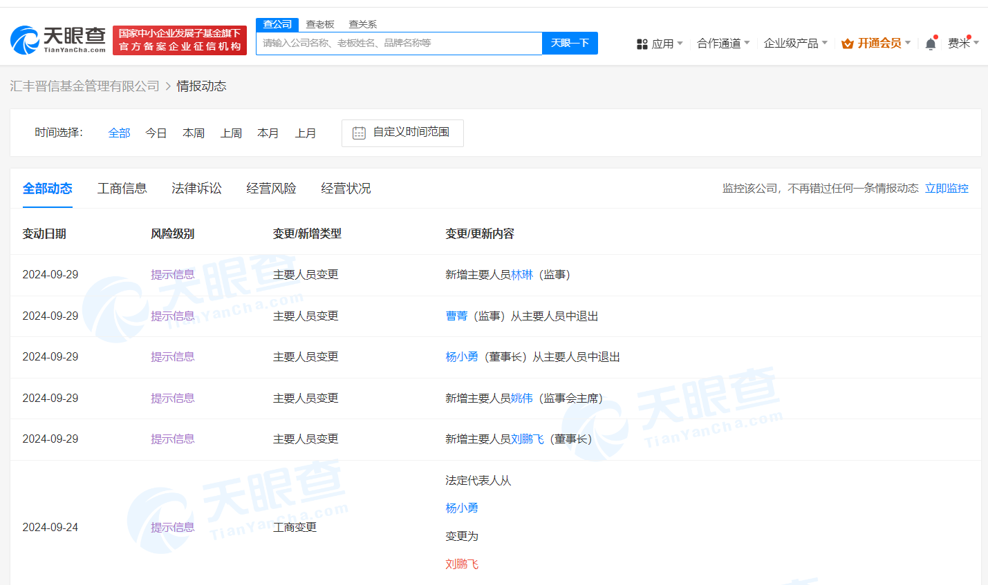 天眼查app显示,近日,汇丰晋信基金管理有限公司发生工商变更,杨小勇卸任法定代表人、董事长,由刘鹏飞接任,同时部分高管发生变更。