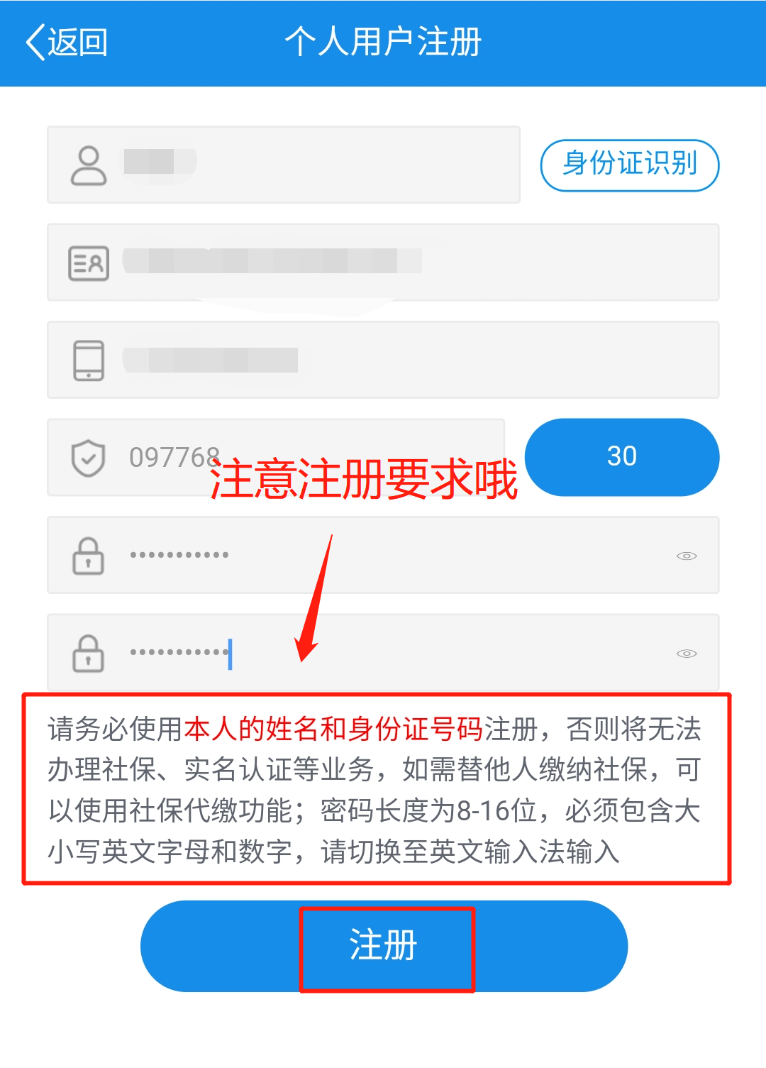按照要求输入注册信息