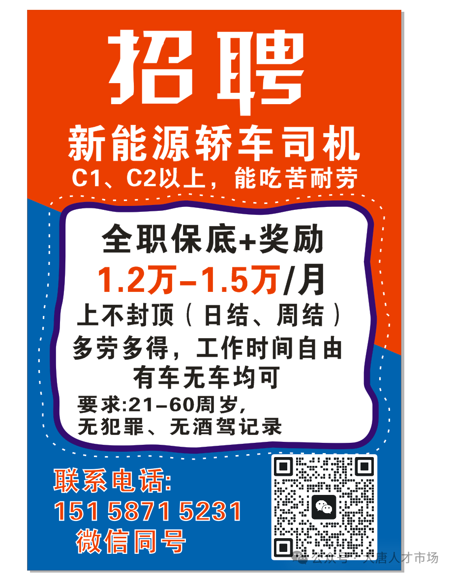 新能源轿车司机 C1、C2以上,能吃苦耐劳