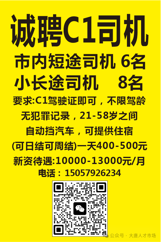 电话&微信18657512368诚聘C1司机
